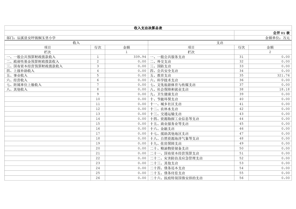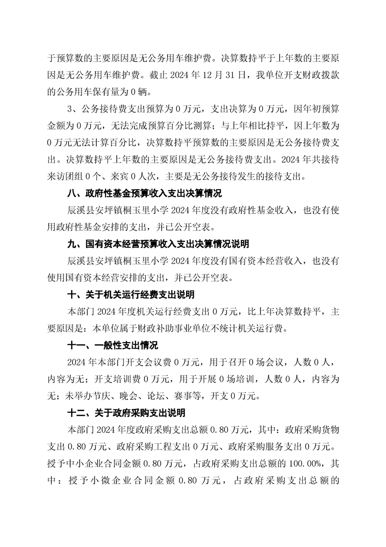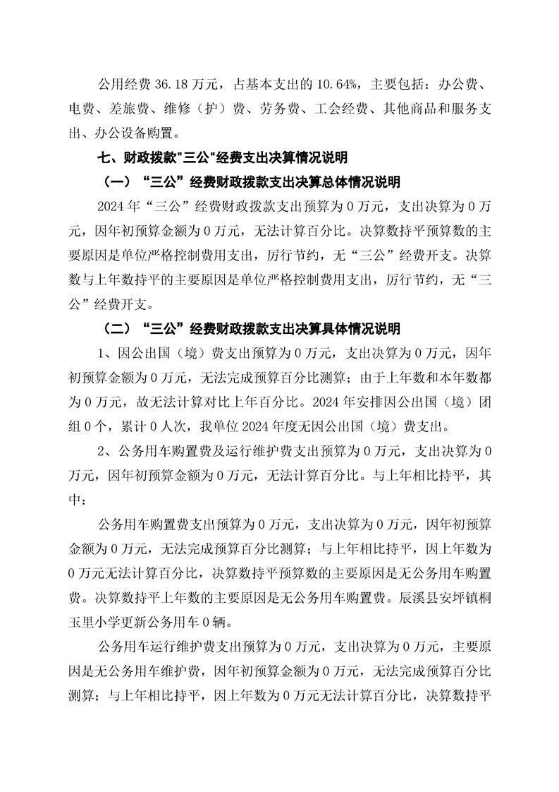 辰溪縣安坪鎮桐玉里小學2024年部門決算公開說明