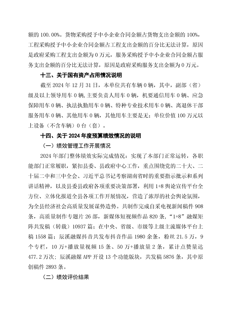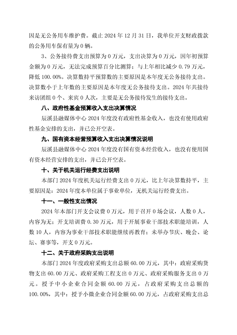 辰溪縣融媒體中心2024年部門決算公開說明