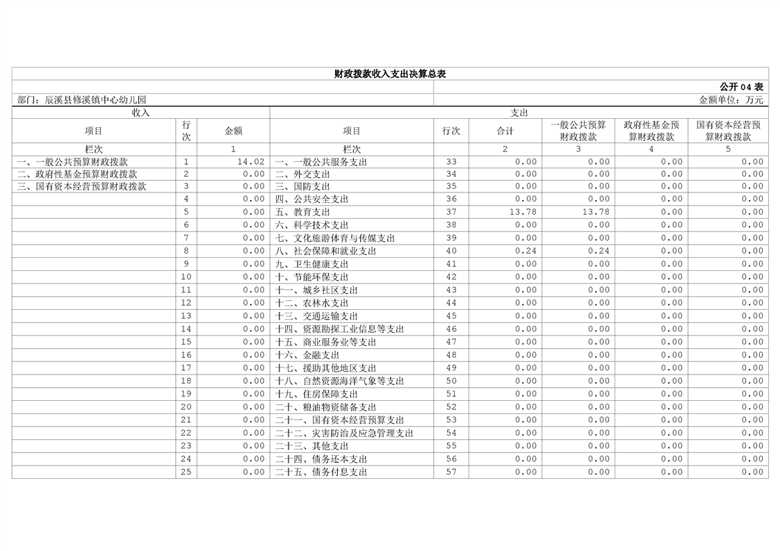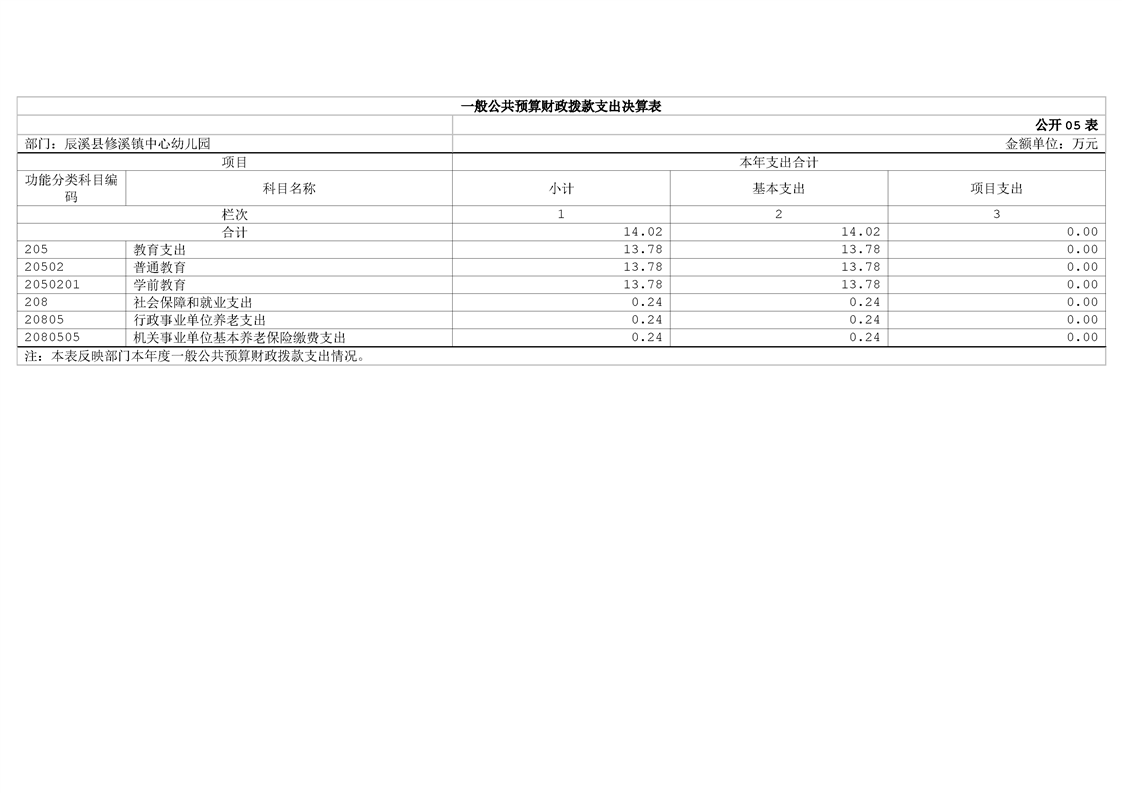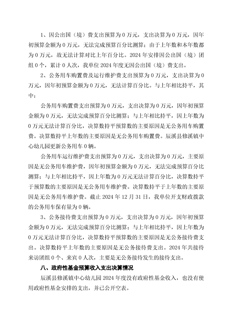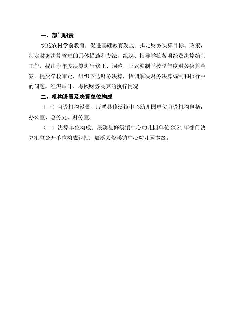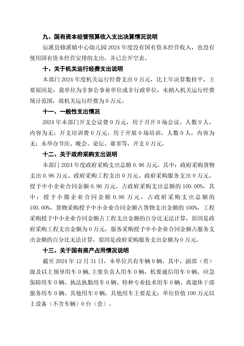 辰溪縣修溪鎮中心幼兒園2024年部門決算公開說明