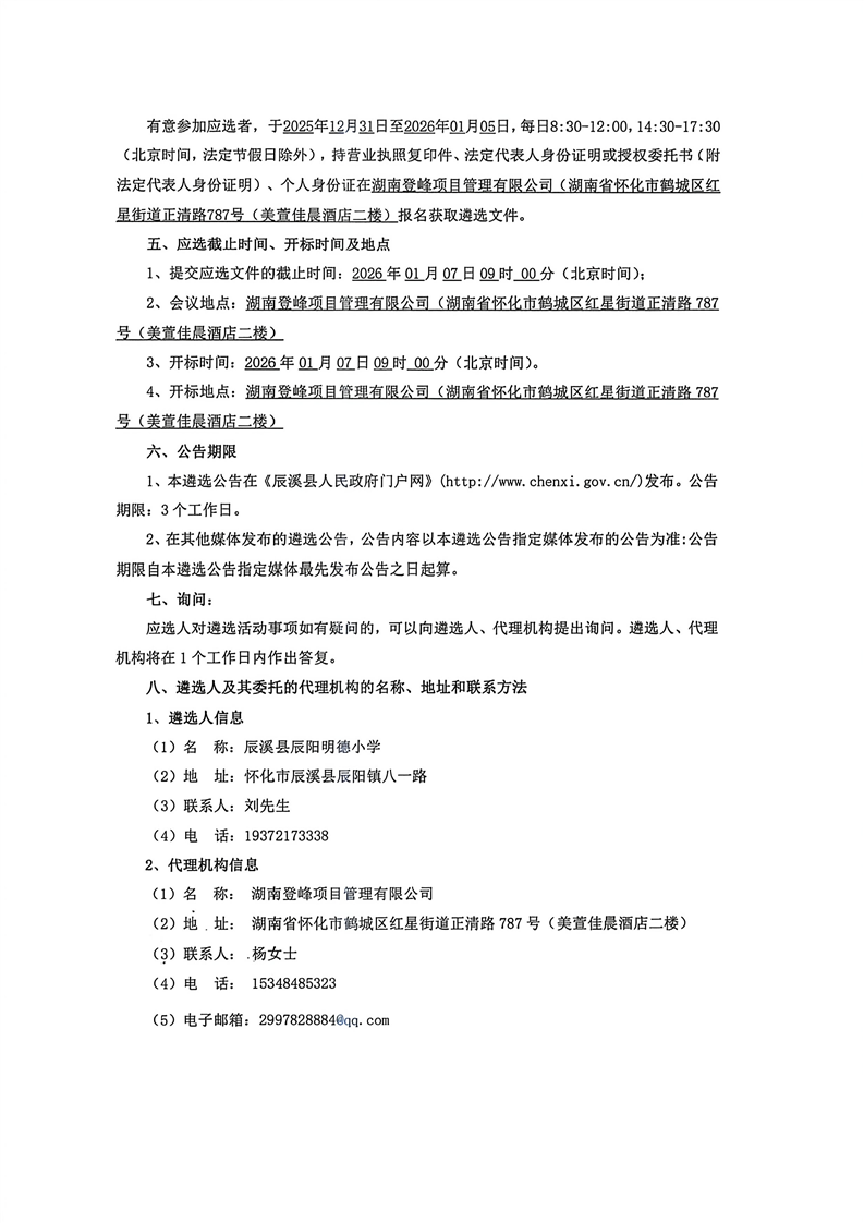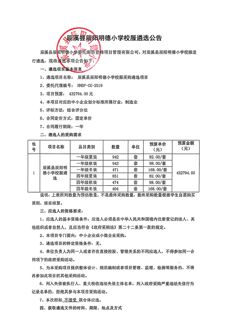 辰溪縣辰陽明德小學校服遴選公告