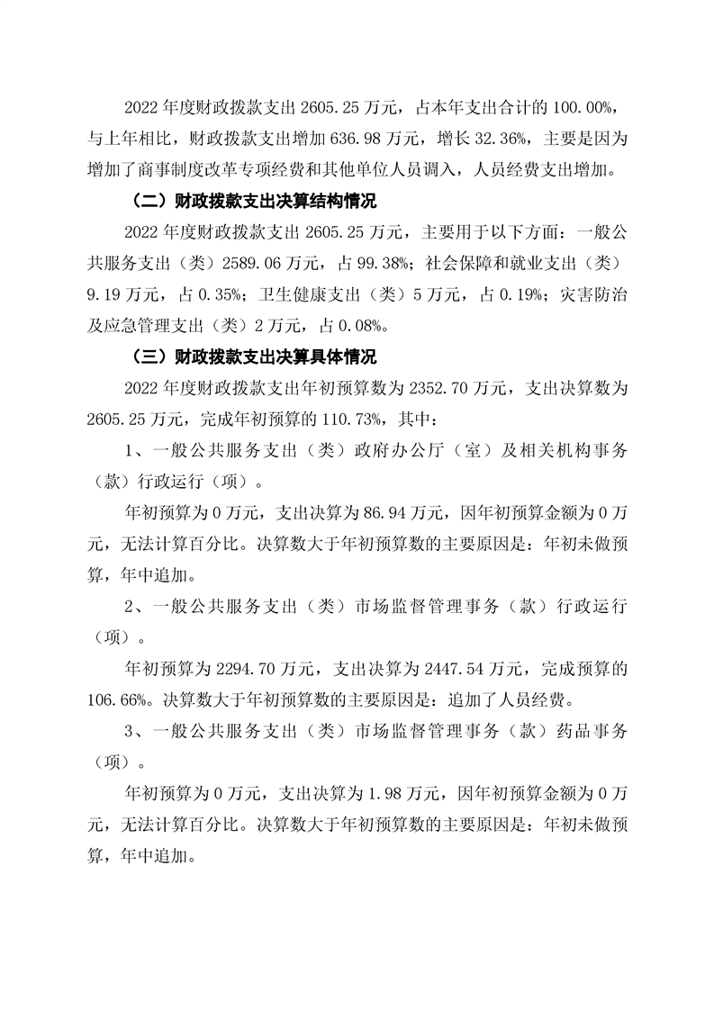 2022年度辰溪縣市場(chǎng)監(jiān)督管理局部門決算