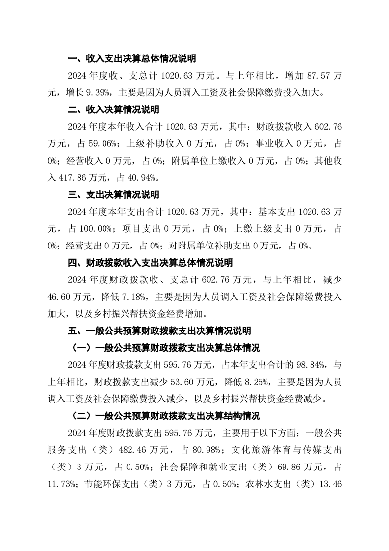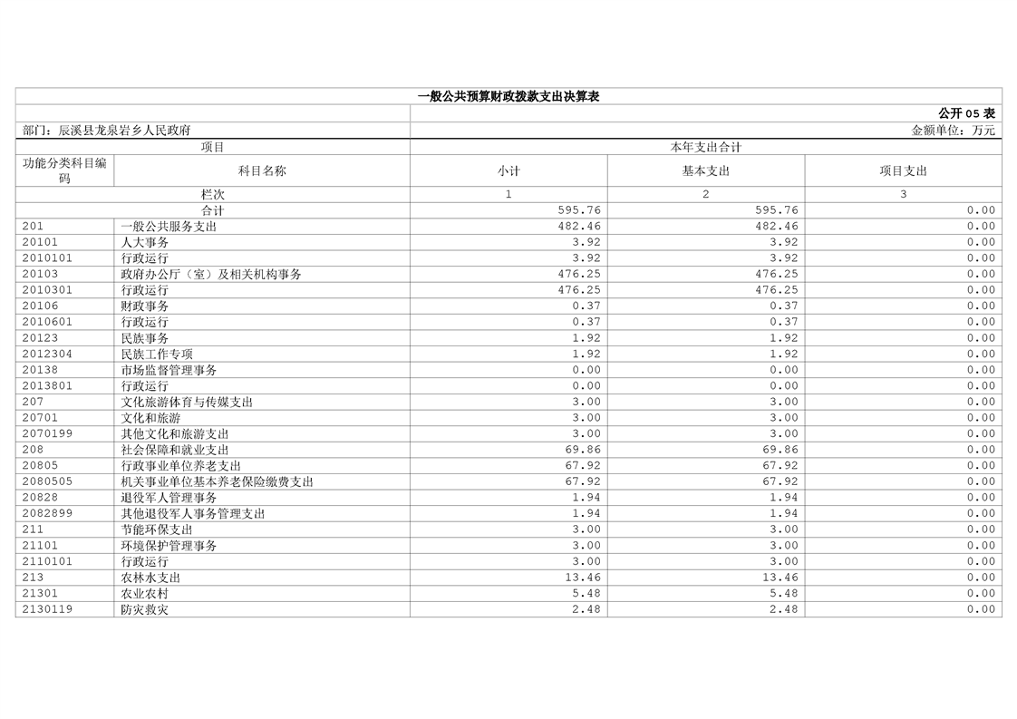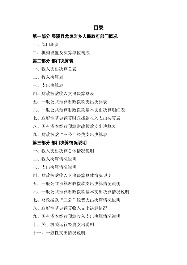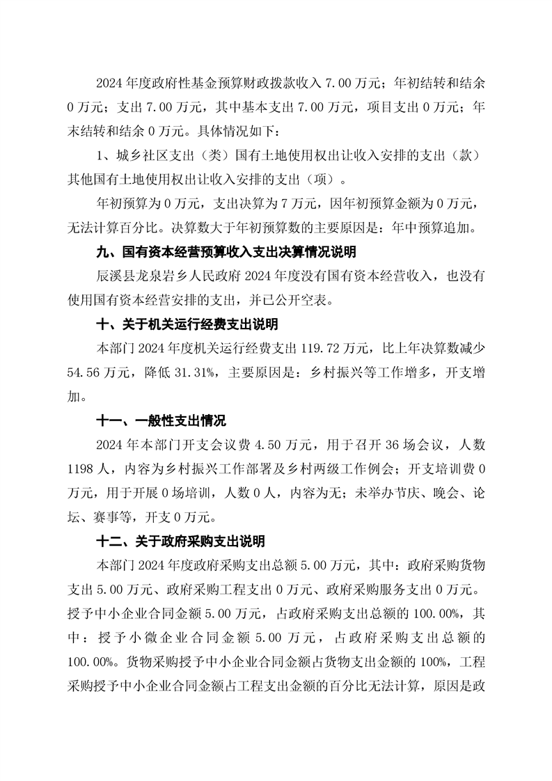 辰溪縣龍泉巖鄉人民政府2024年部門決算公開說明
