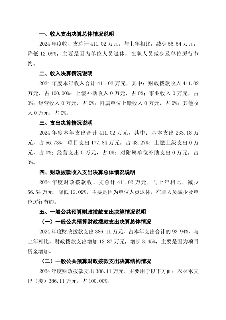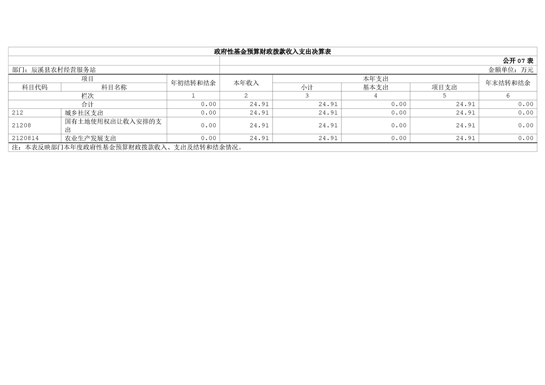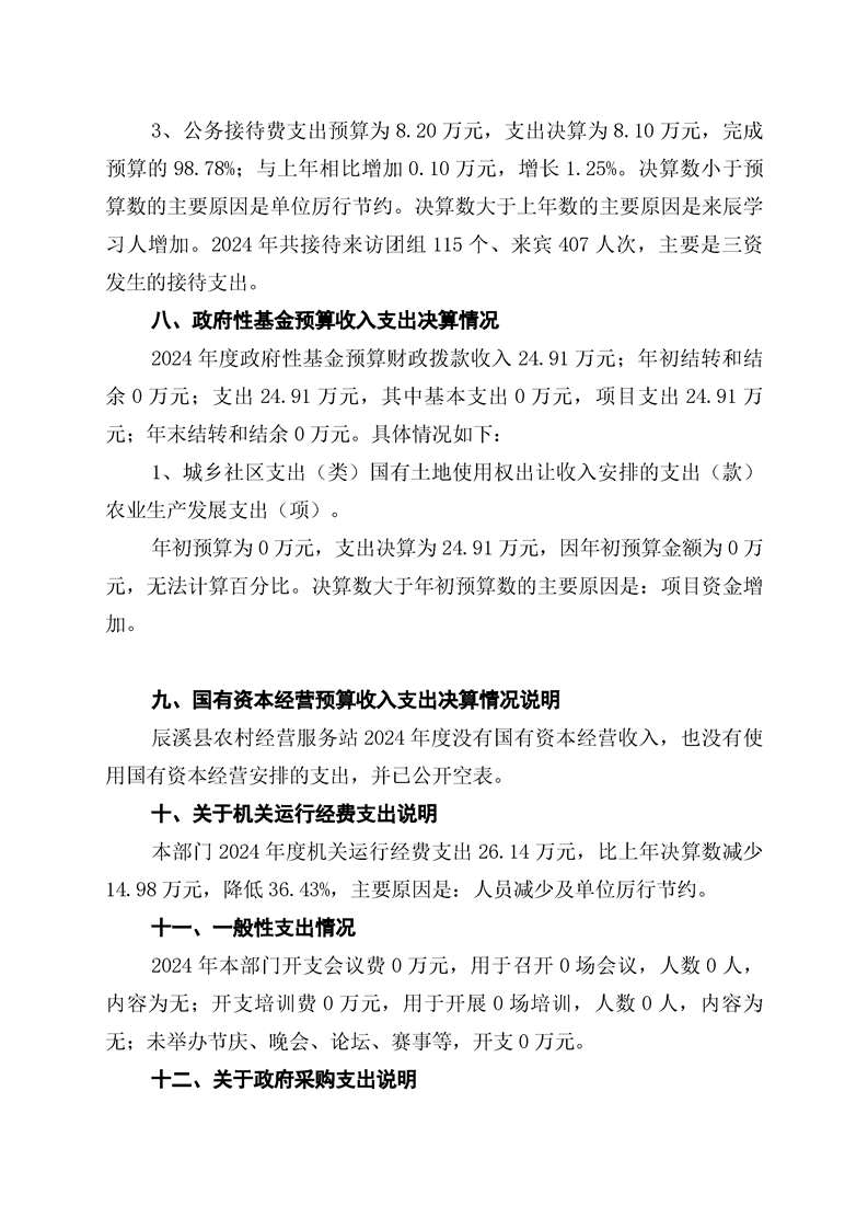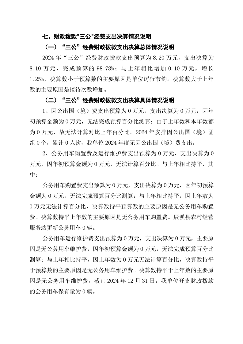 辰溪縣農村經營服務站2024年部門決算公開說明