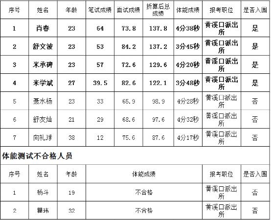 黃溪口派出所聘用名單(職位數4人)