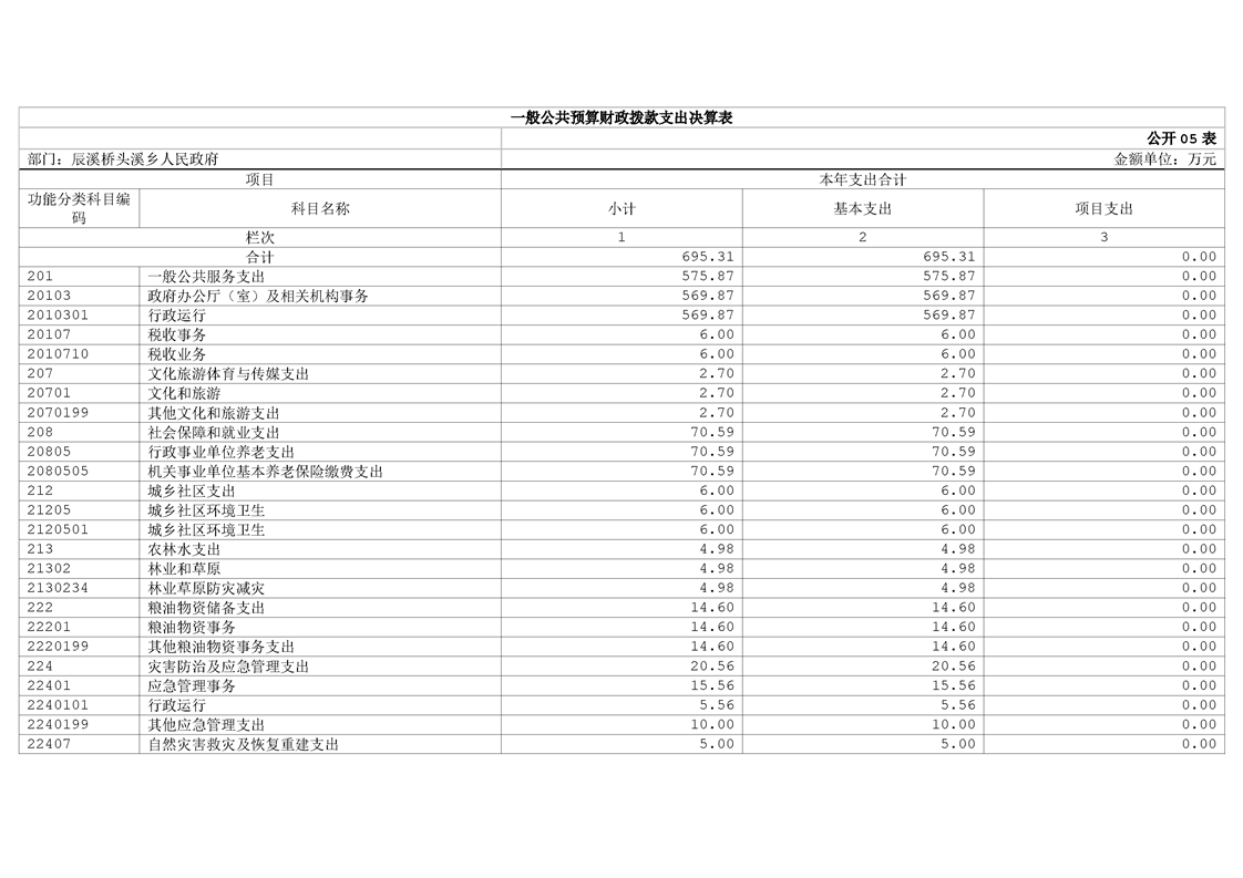 辰溪橋頭溪鄉人民政府2024年部門決算公開說明