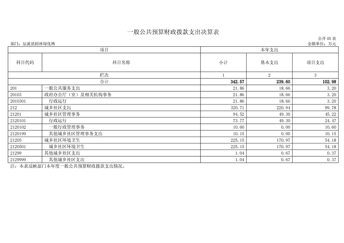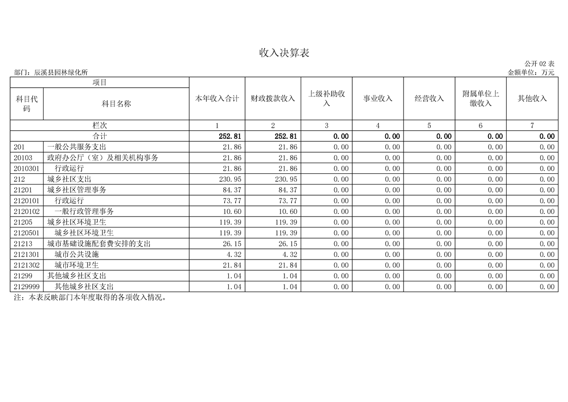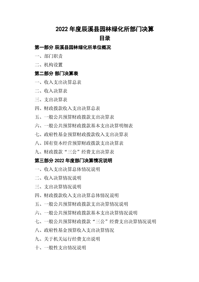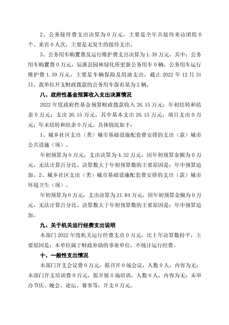 2022年度辰溪縣園林所部門決算