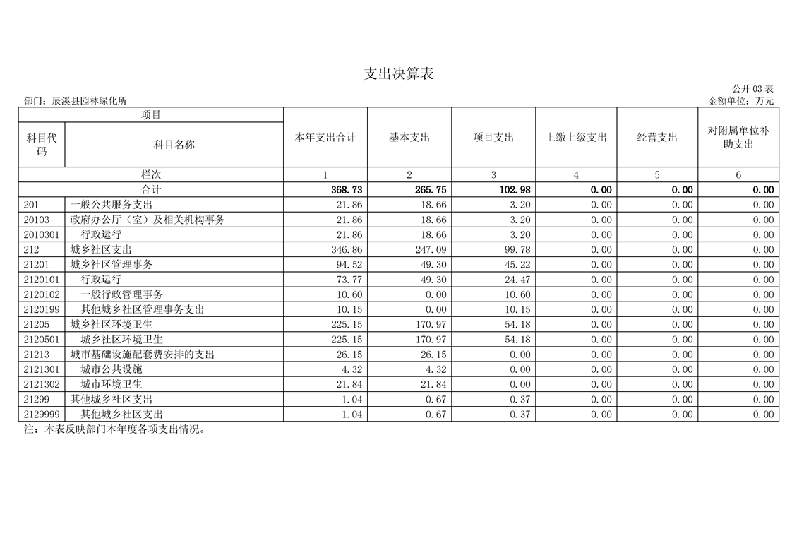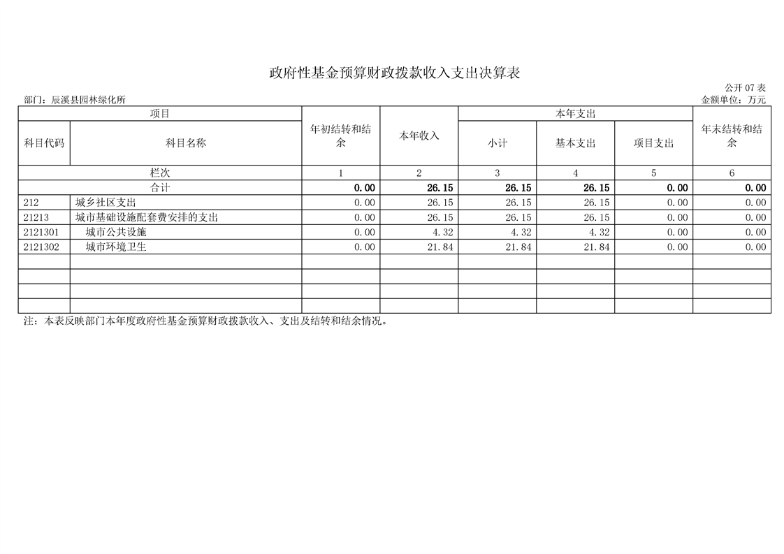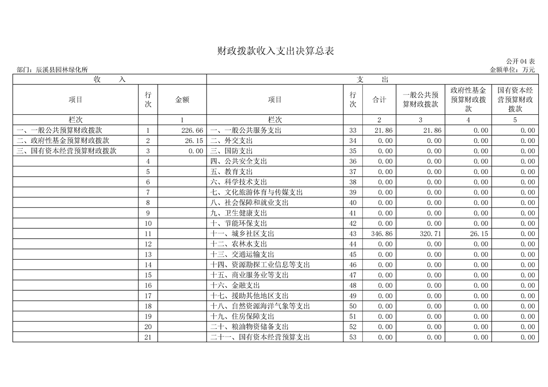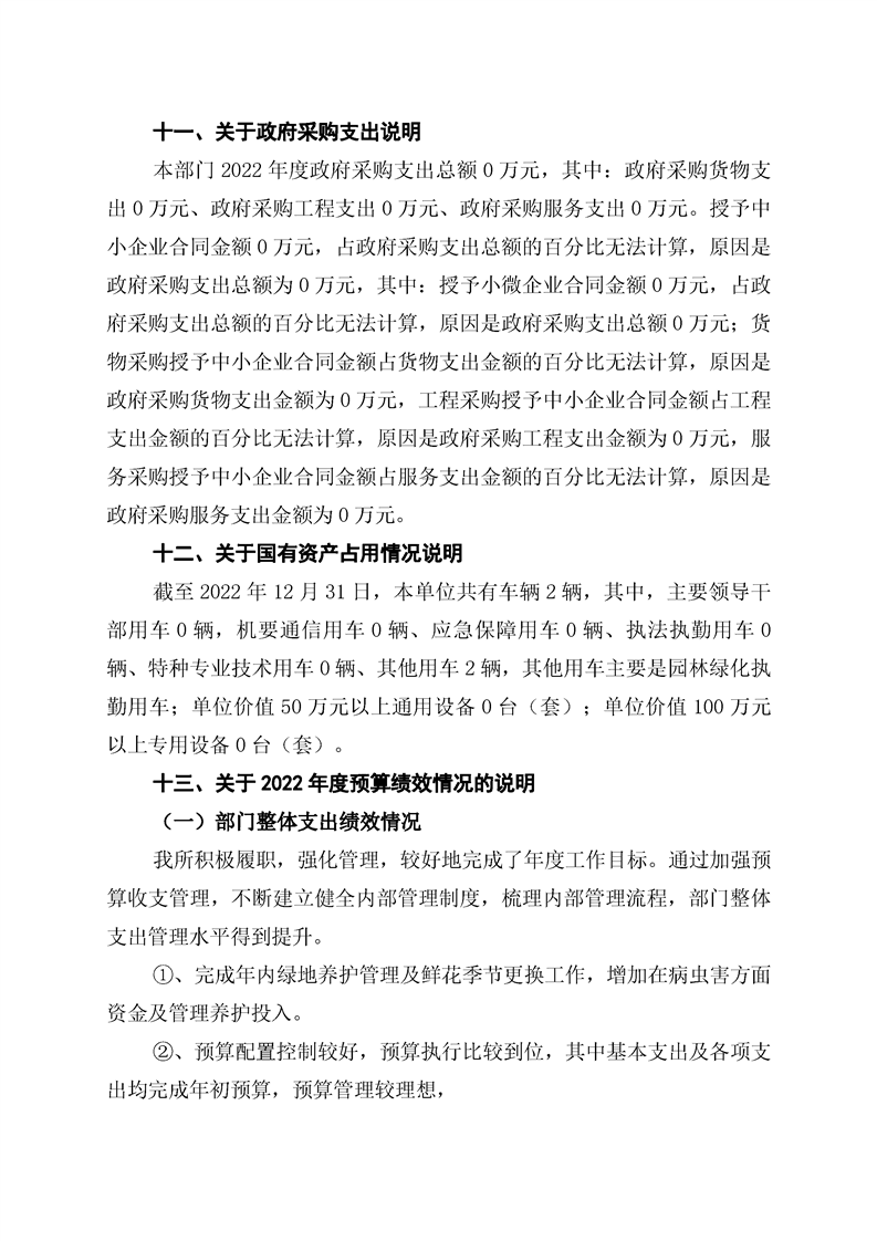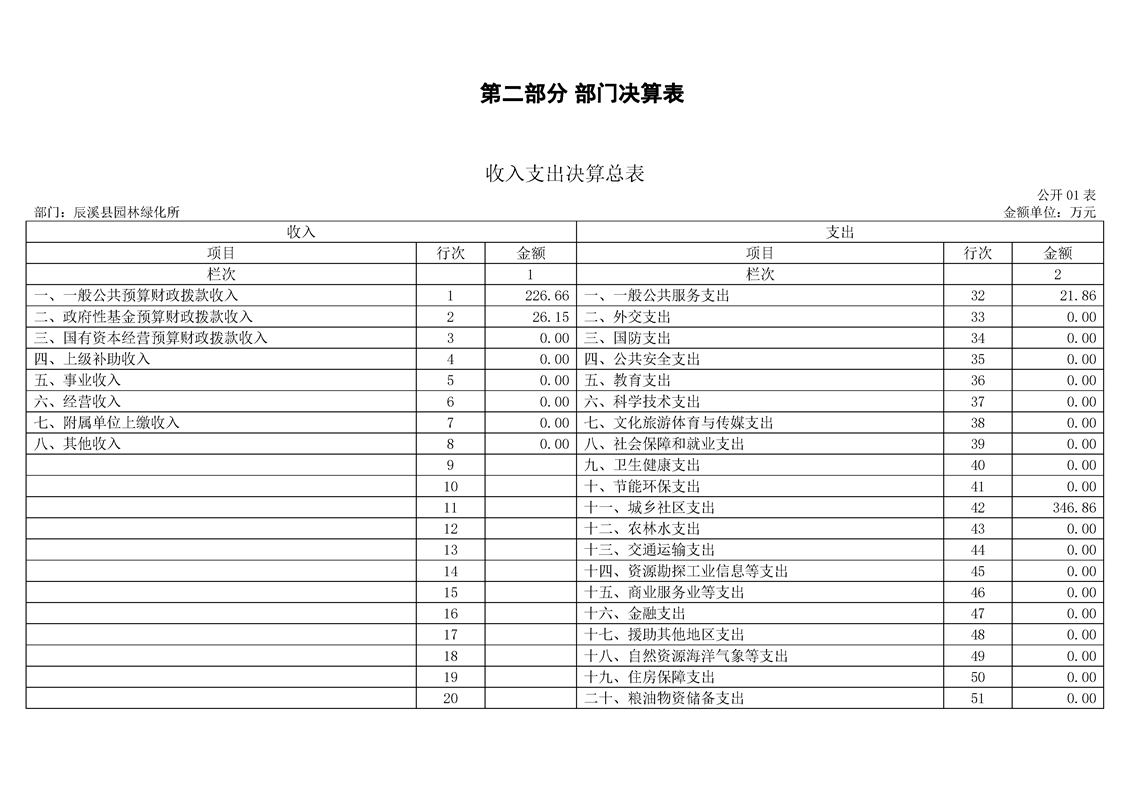 2022年度辰溪縣園林所部門決算