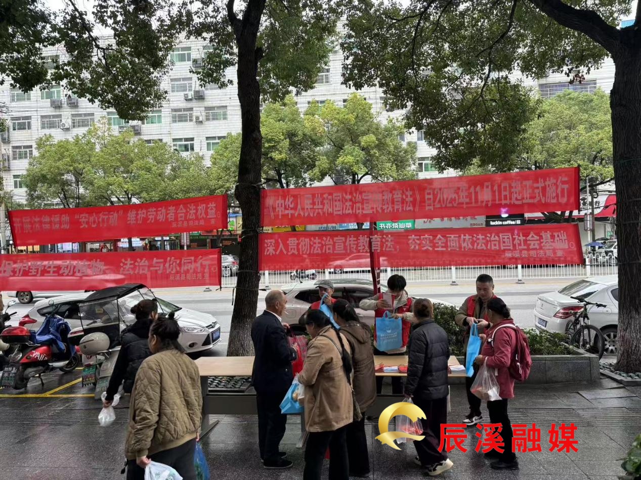 11月7日,辰溪縣司法局牽頭組織普法志愿者與專業(yè)律師隊(duì)伍,在縣城東風(fēng)路開展《中華人民共和國法治宣傳教育法》集中宣傳活動(dòng)。