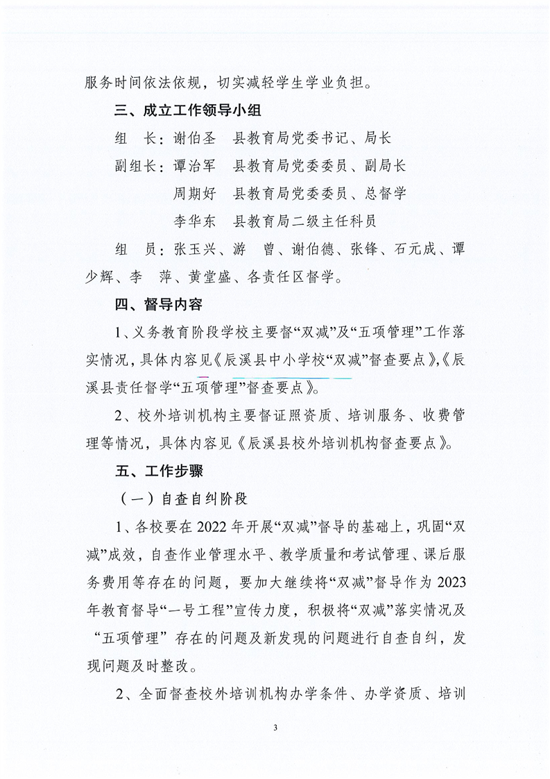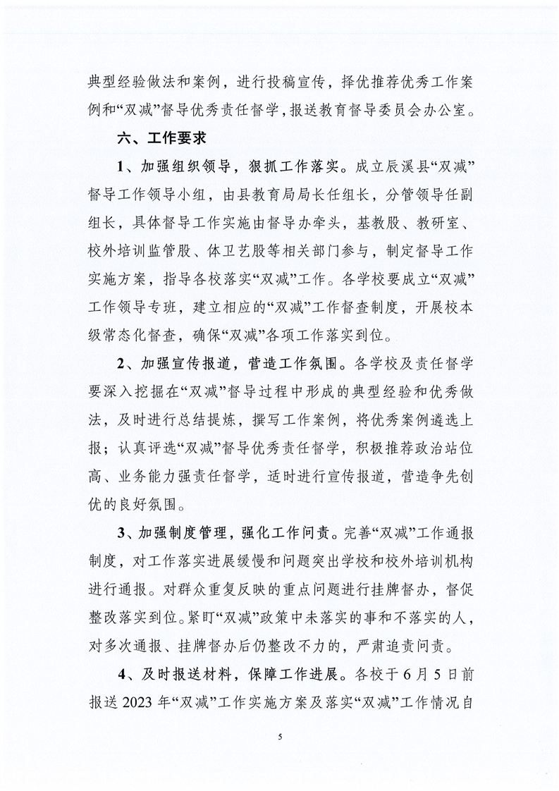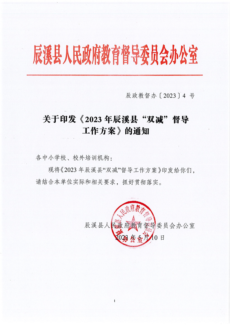 關于印發《2023年辰溪縣“雙減”督導工作方案》的通知