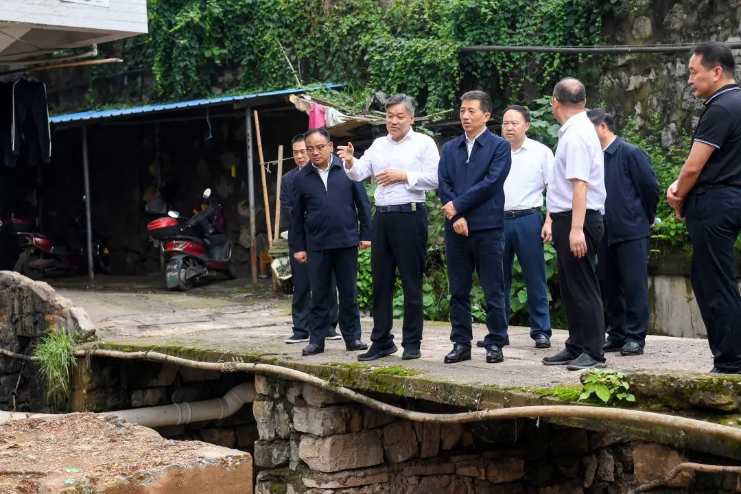 (5月12日上午,市委書記許忠建在城區調研督導生態環境問題。圖為許忠建來到茅谷沖溪片區察看了解雨污分流改造工程進展情況。懷化日報全媒體記者 楊智偉 攝)