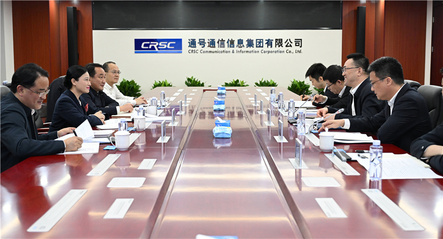 (2月28日、3月3日,市委副書記、市長韋朝暉帶隊赴國家有關部委匯報對接工作并在京招商考察。圖為3月3日,韋朝暉在通號通信信息集團有限公司座談交流。懷化日報全媒體記者 吳濤 攝)