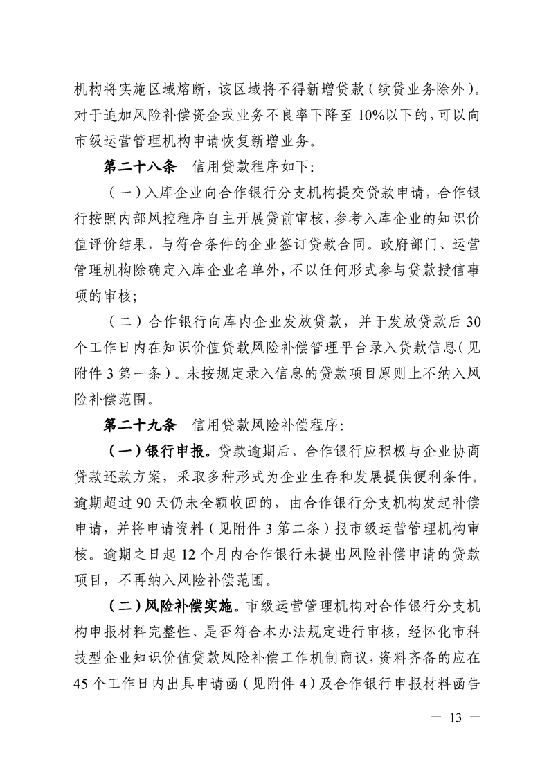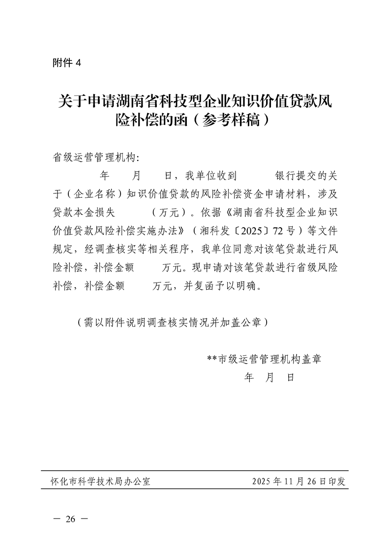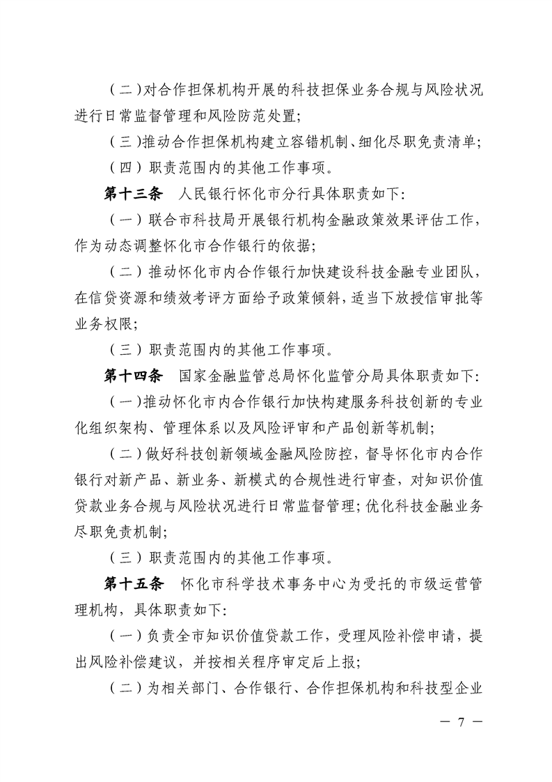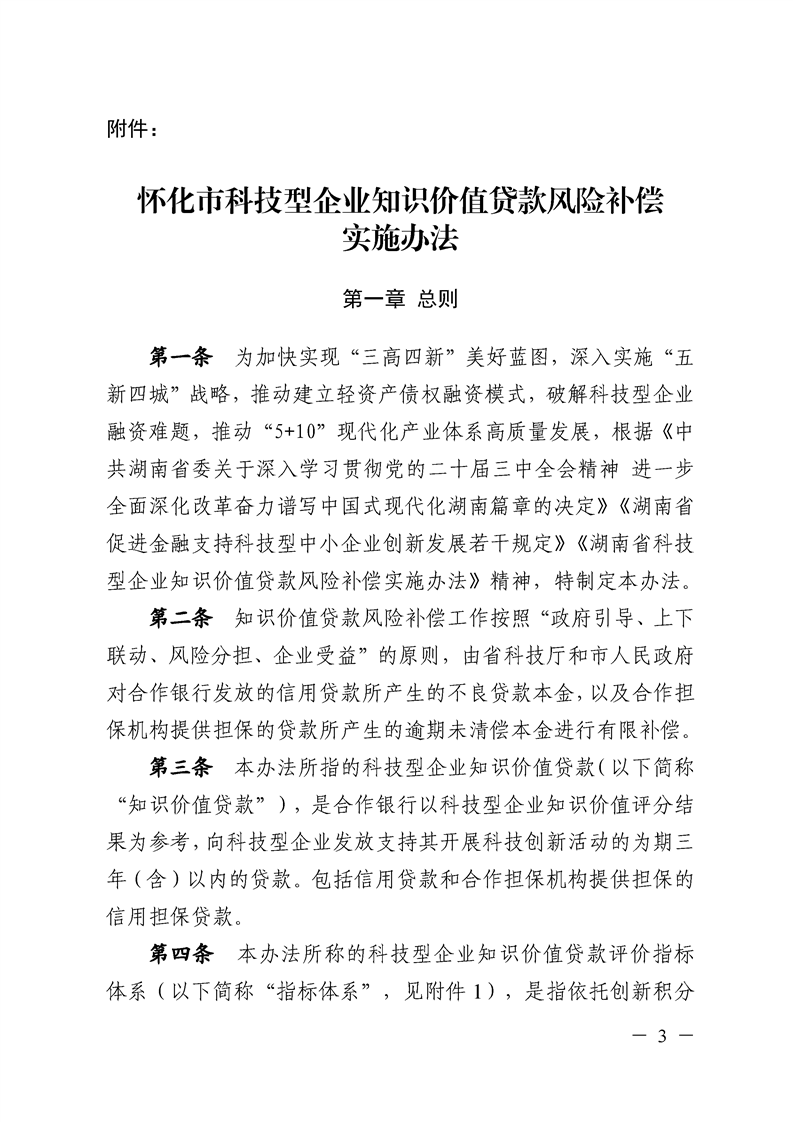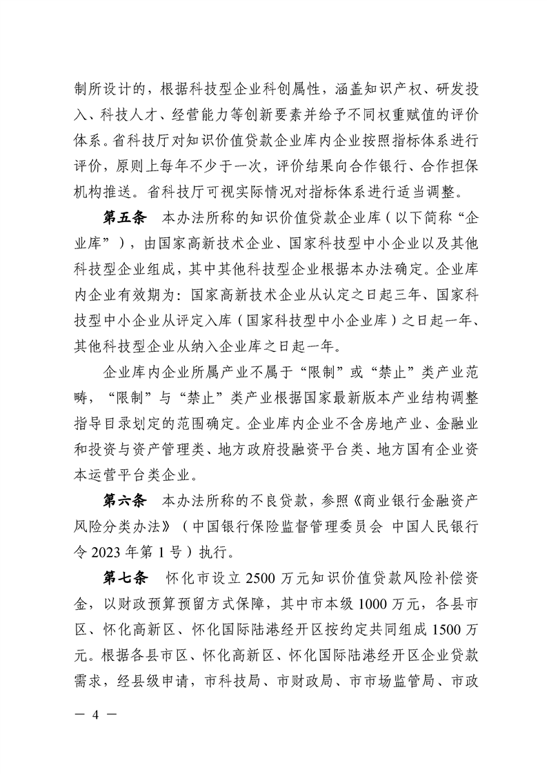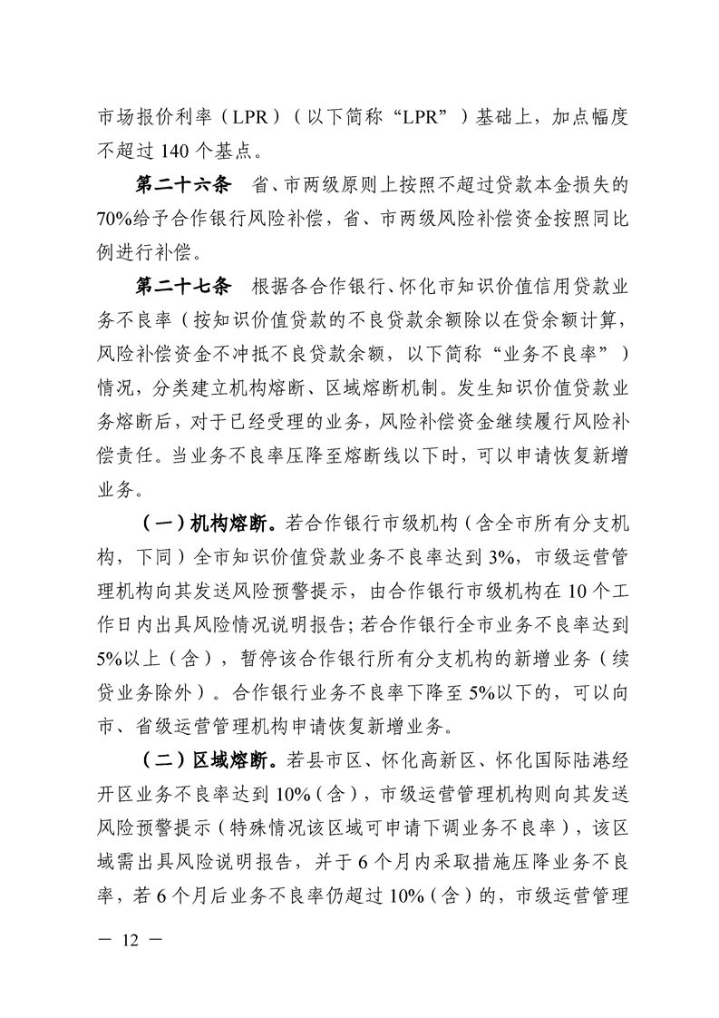 關于印發《懷化市科技型企業知識價值貸款風險補償實施辦法》的通知