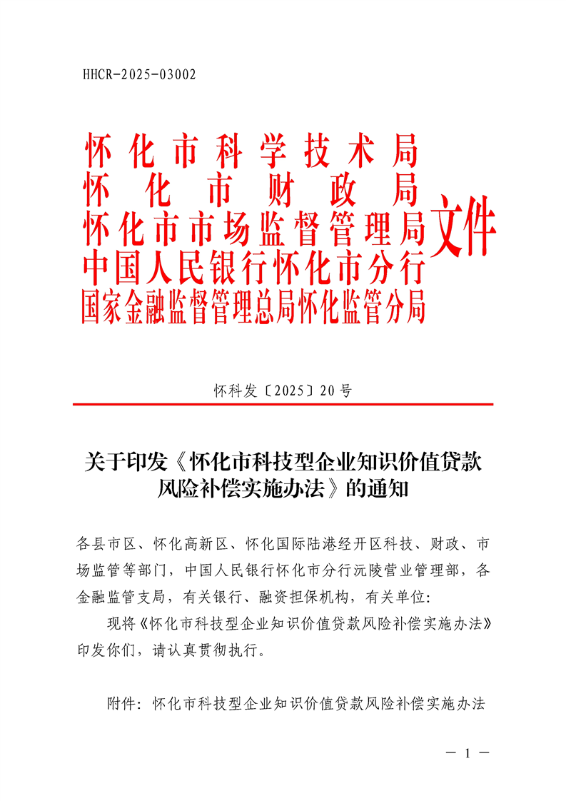 索引號:431200/2025-033178 文號:懷科發〔2025〕20號 統一登記號:HHCR-2025-03002