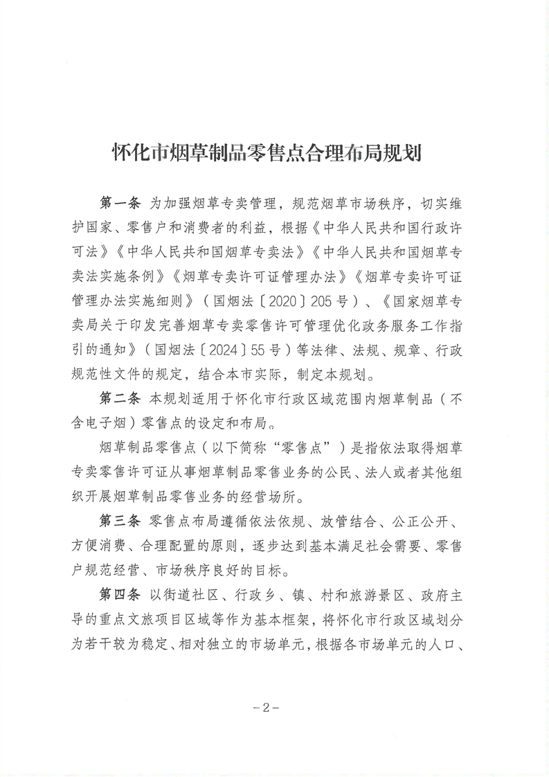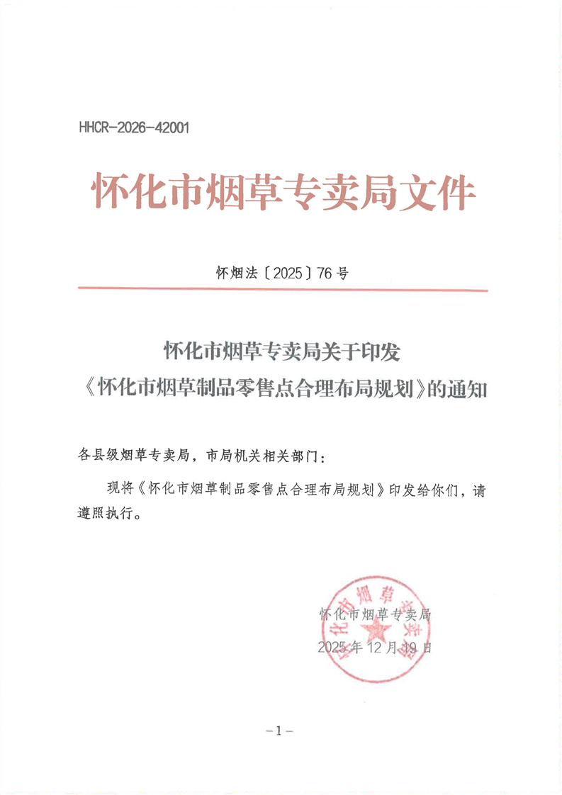 懷化市煙草專賣局關于印發《懷化市煙草制品零售點合理布局規劃》的通知