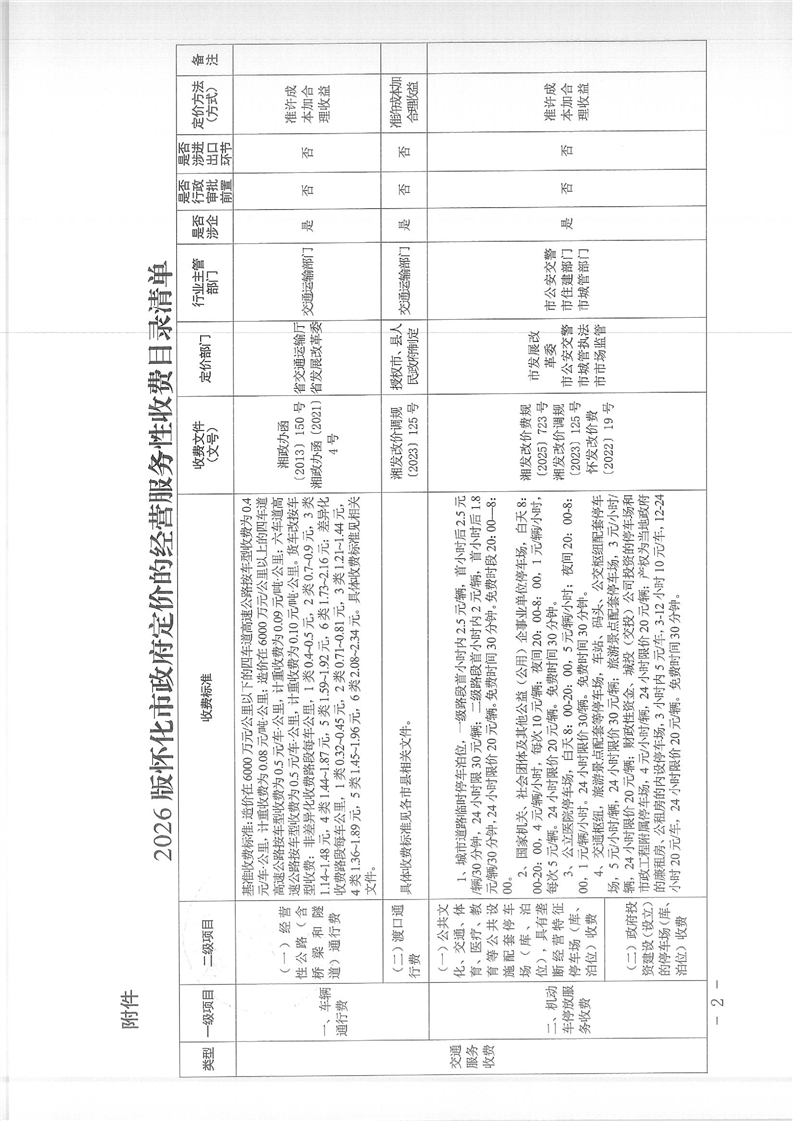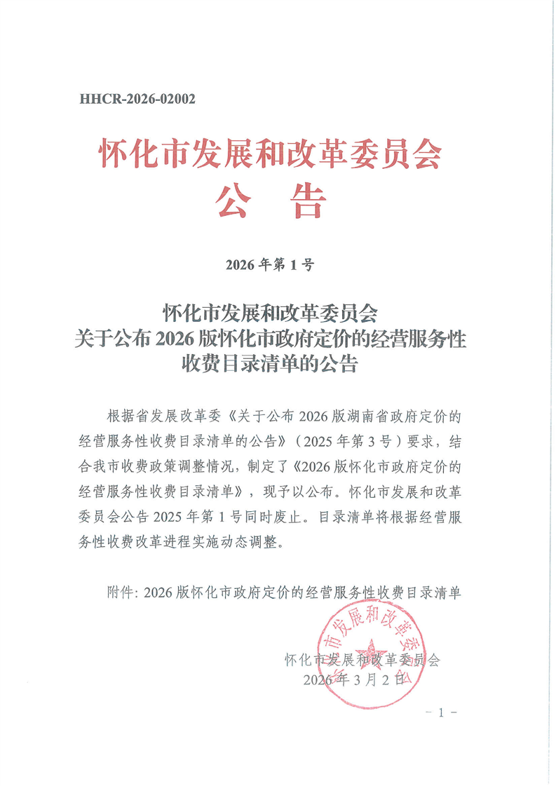 懷化市發(fā)展和改革委員會關于公布2026版懷化市政府定價的經(jīng)營服務性收費目錄清單的公告