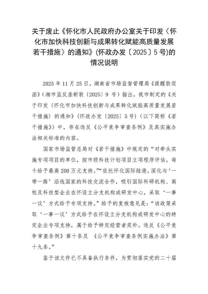 • 懷化市人民政府辦公室關于廢止《懷化市人民政府辦公室關于印發〈懷化市加快科技創新與成果轉化賦能高質量發展若干措施〉的通知》(懷政辦發〔2025〕5號)的通知