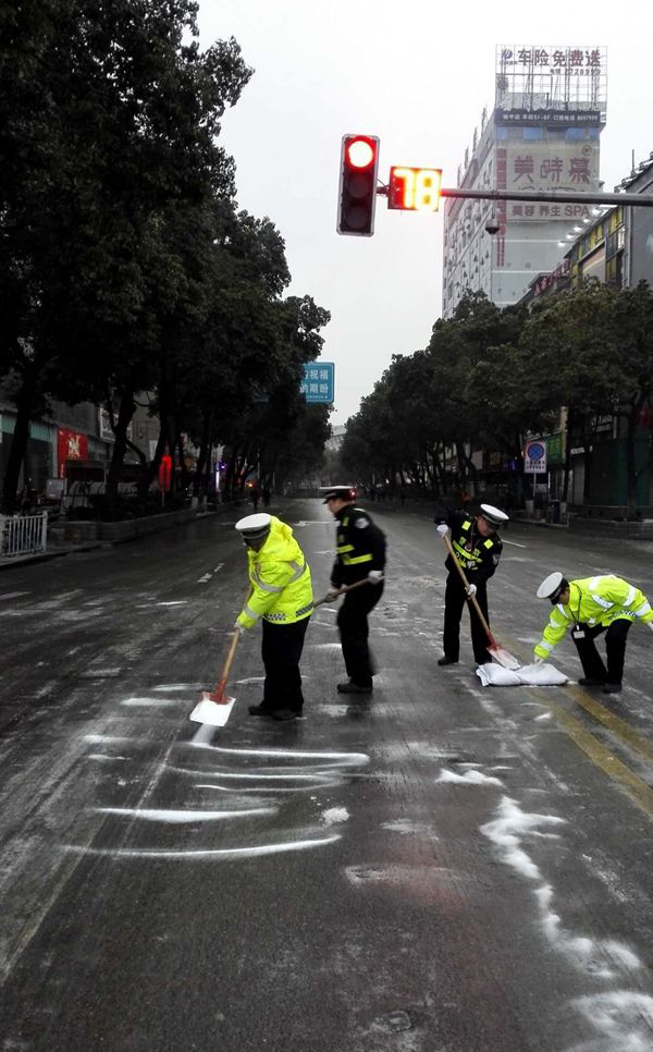 一、農村: G209國道全線結冰,于1月26日晚18時對客運車輛及7座以上車輛禁止通行,7座以下車輛必須安裝防滑鏈才能通行。因道路結冰,單方一般事故多發,民警迅速出警,及時處置,并妥善安置事故當事人;黃金坳座巖上坡因冰雪路滑,滯留車輛較多,民警協助駕駛人安裝防滑鏈,撒鹽除雪,幫助群眾。