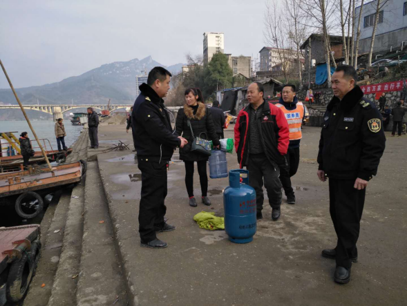 1月31日,春運第11天,正值懷化市溆浦縣大江口鎮農歷2018年最后一個趕集日,人多船多,溆浦縣地方海事處執法人員一大早來到大江口碼頭開展現場安全檢查,禁止“危險品”上船。