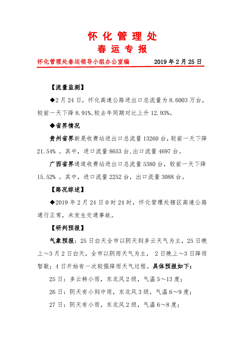 2019年懷化市高速公路春運(yùn)專(zhuān)報(bào)(第34期)