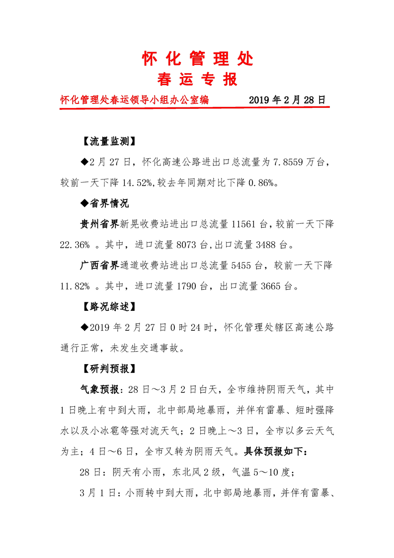 2019年懷化市高速公路春運專報(第37期)