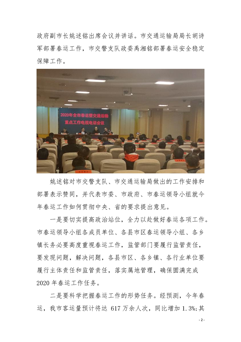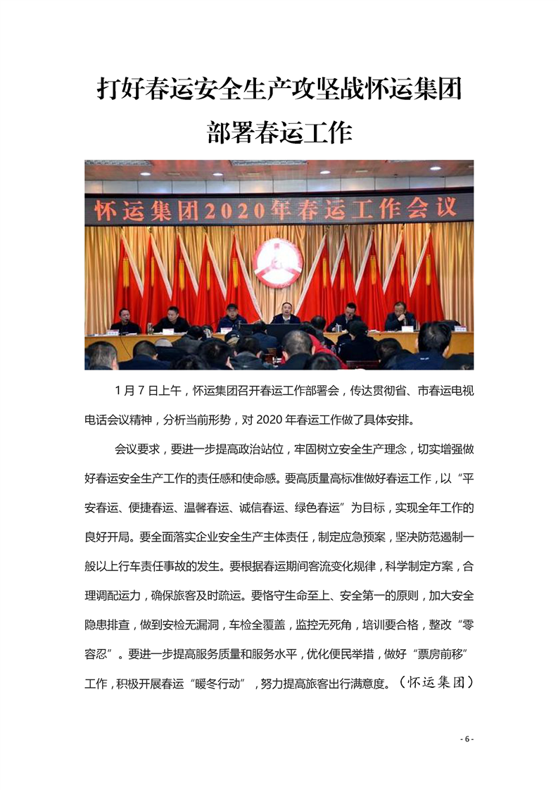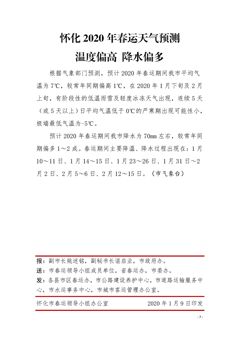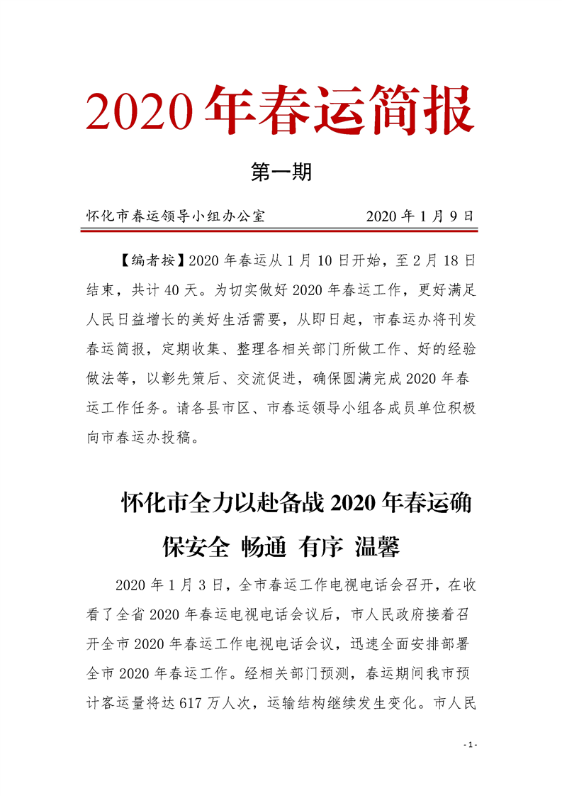 懷化市2020年春運簡報 第一期