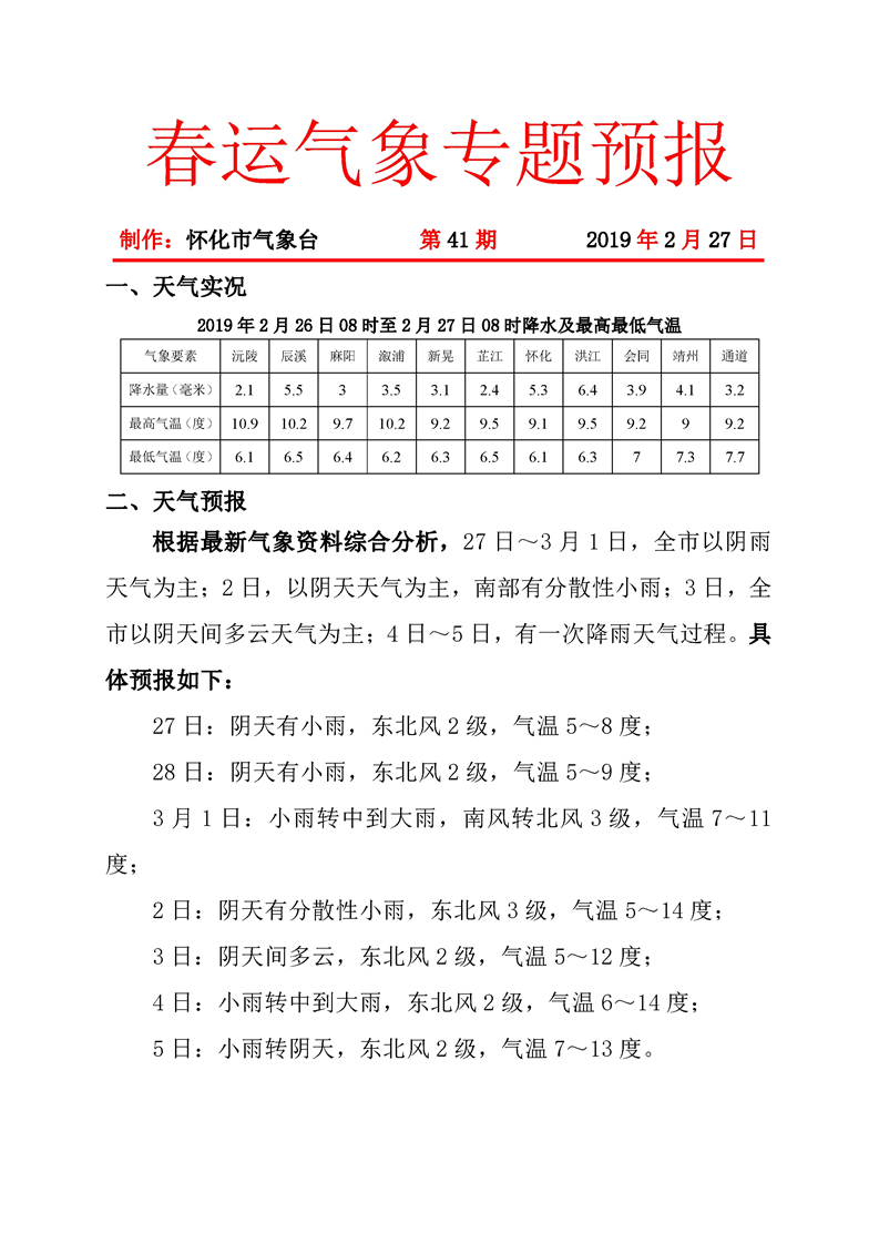 春運氣象專題預報(第41期)