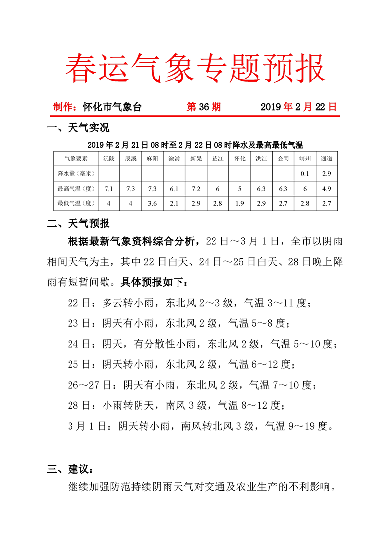 春運(yùn)氣象專題預(yù)報(bào)(第36期)
