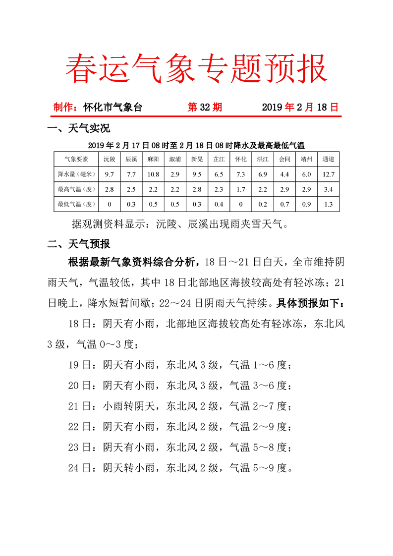 春運氣象專題預報(第32期)