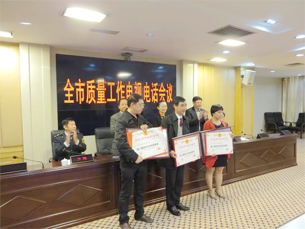 李暉市長代表市委市政府向獲獎單位表示祝獲并頒發證書牌匾,鼓勵企業在各自的行業和領域,嚴格質量控制和管理,帶動全市質量工作水平上臺階。