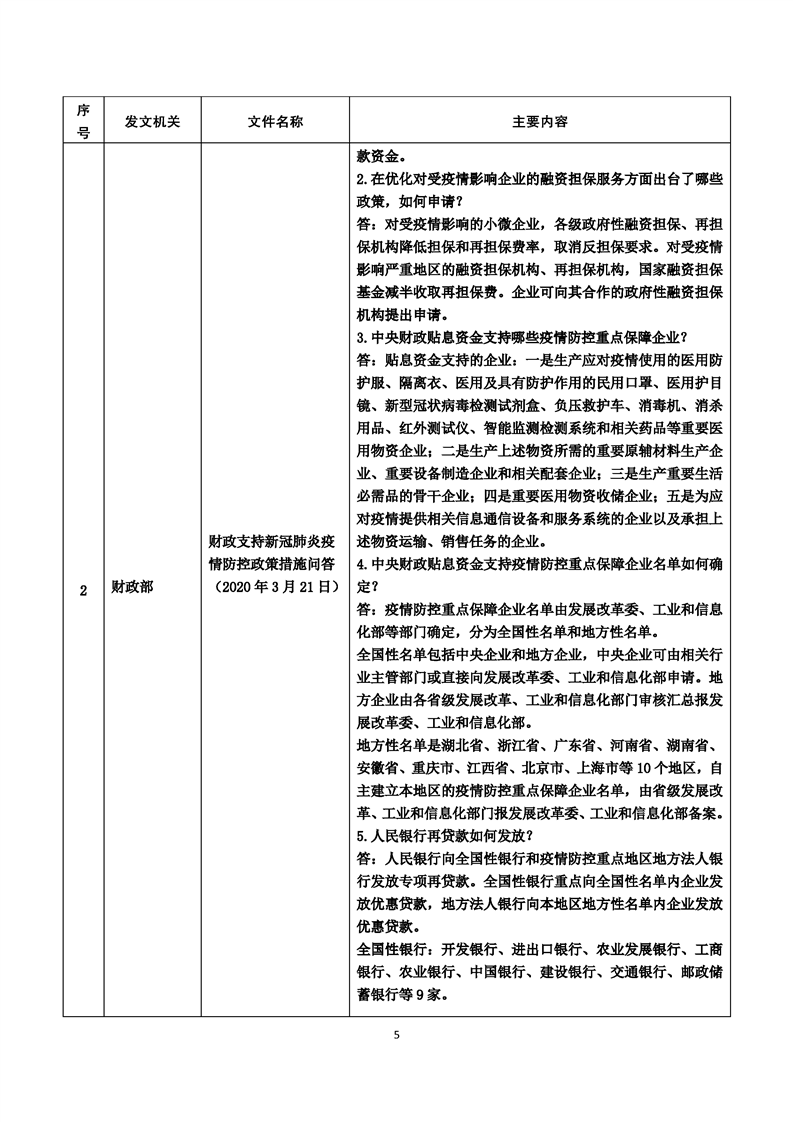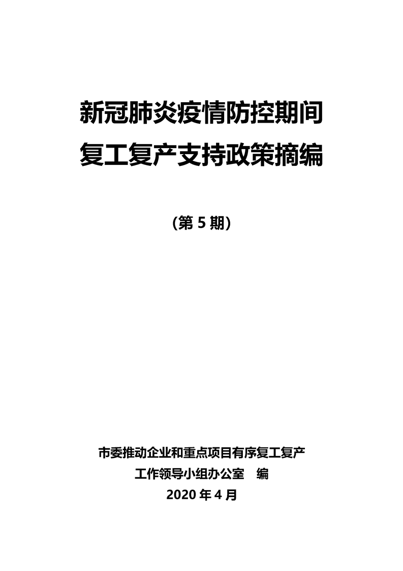 新冠肺炎疫情防控期間復工復產支持政策摘編(第5期)