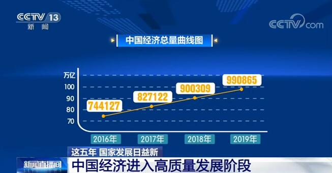 這是“十三五”時期,從2016年到2019年的中國經濟總量曲線圖,四年來,中國經濟總量一年上一個大臺階,年均經濟增長率達到6.7%,高于世界經濟平均水平3.9個百分點。