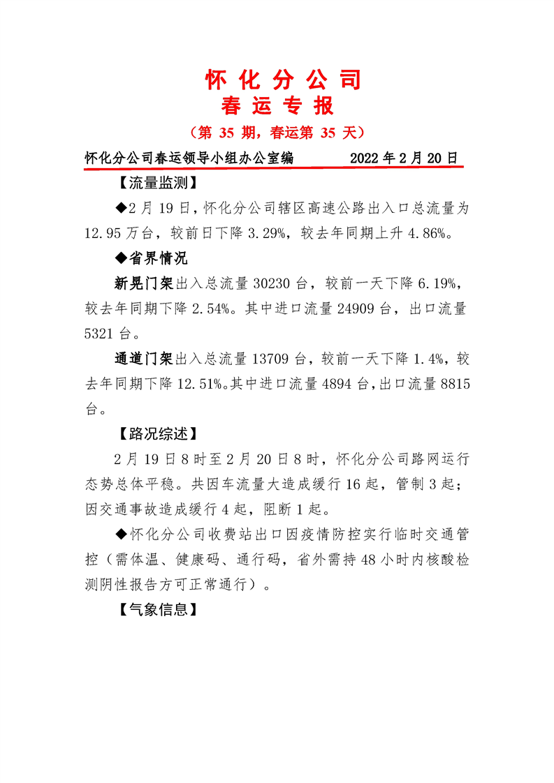 2022年高速懷化分公司第35期春運(yùn)專(zhuān)報(bào)