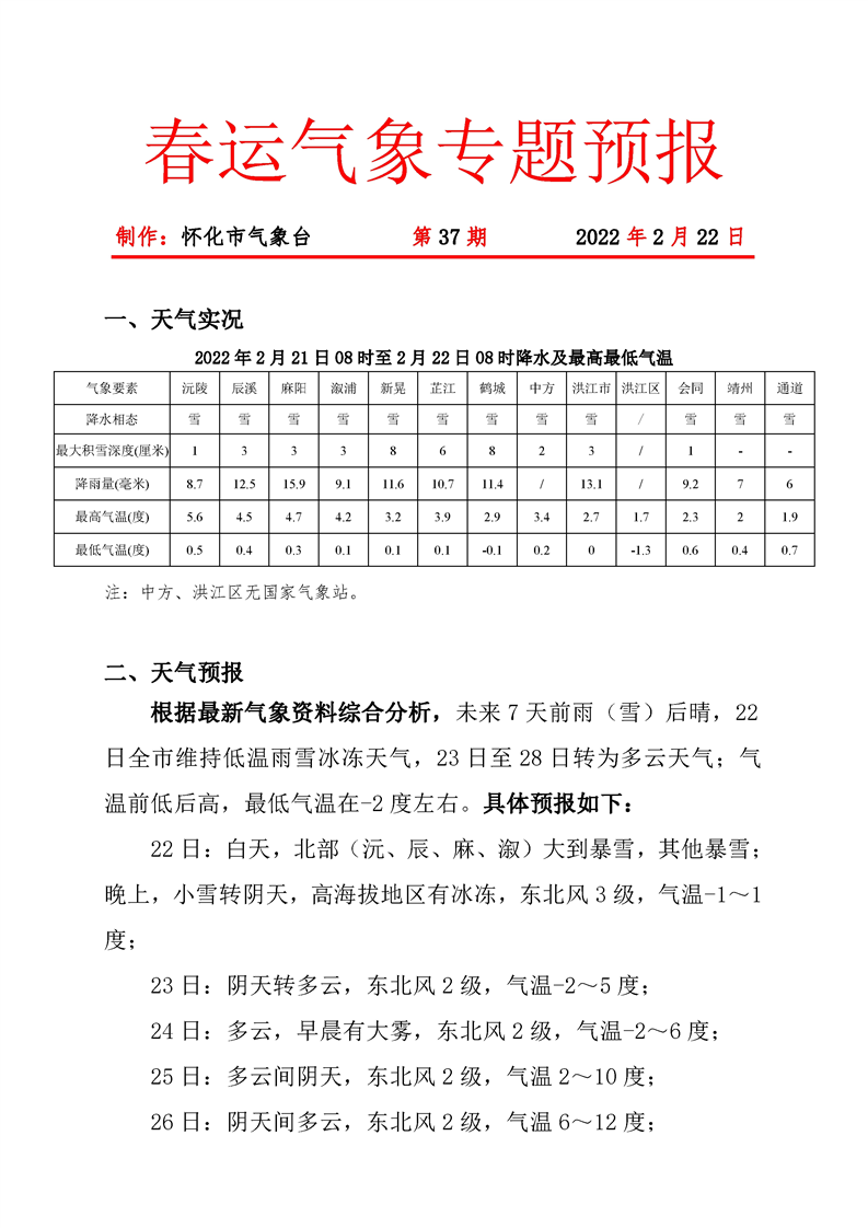 春運氣象專題預報 第37期