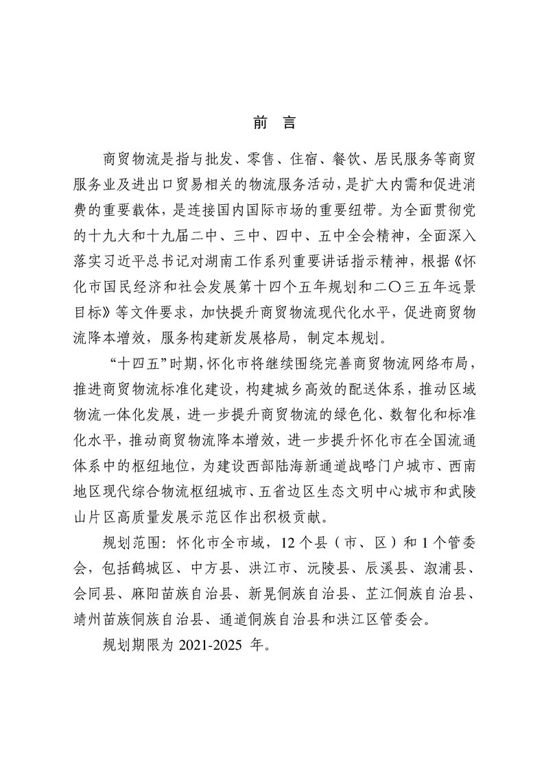 懷化市“十四五”商貿物流發展規劃