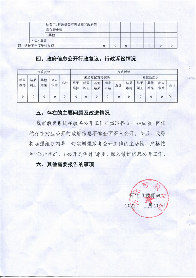 2021年懷化市教育局政府信息公開工作年度報告