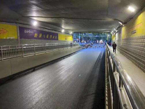 懷北路鐵路涵洞是城北區域進出城區的重要通道,此前涵洞建設時未配套安裝排水設施,加之鐵路涵洞頂部漏水,涵洞內積水無法及時排除,瀝青路面長期受到雨水侵蝕,瀝青路面出現破損、擁包、跑砂等病害,尤其是幾處路面破損面積較大,兩側車道整體縱向出現車轍坑槽、坑洞,嚴重影響行車安全。此次修復施工后,路基路面坑槽、破損均已修復,且已在涵洞兩側設計坡度以便涵洞內車行道內雨水排出。
