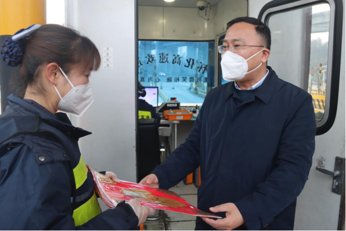 1月11日傍晚,懷化分公司領導來到懷化南中心大站收費現場,親切看望堅守在一線的職工,并為他們送去一幅幅喜慶的春聯。鼓勵大家在新的一年里,鼓足干勁,力爭上游,盡職盡責做好本職工作,在新的征程上為公司高質量發展做出新的更大的貢獻。