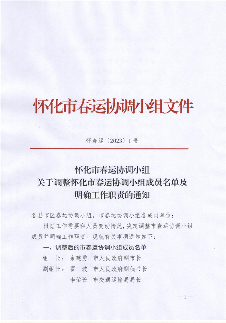 懷春運〔2023〕1號 關(guān)于調(diào)整懷化市春運協(xié)調(diào)小組成員名單及明確工作職責(zé)的通知