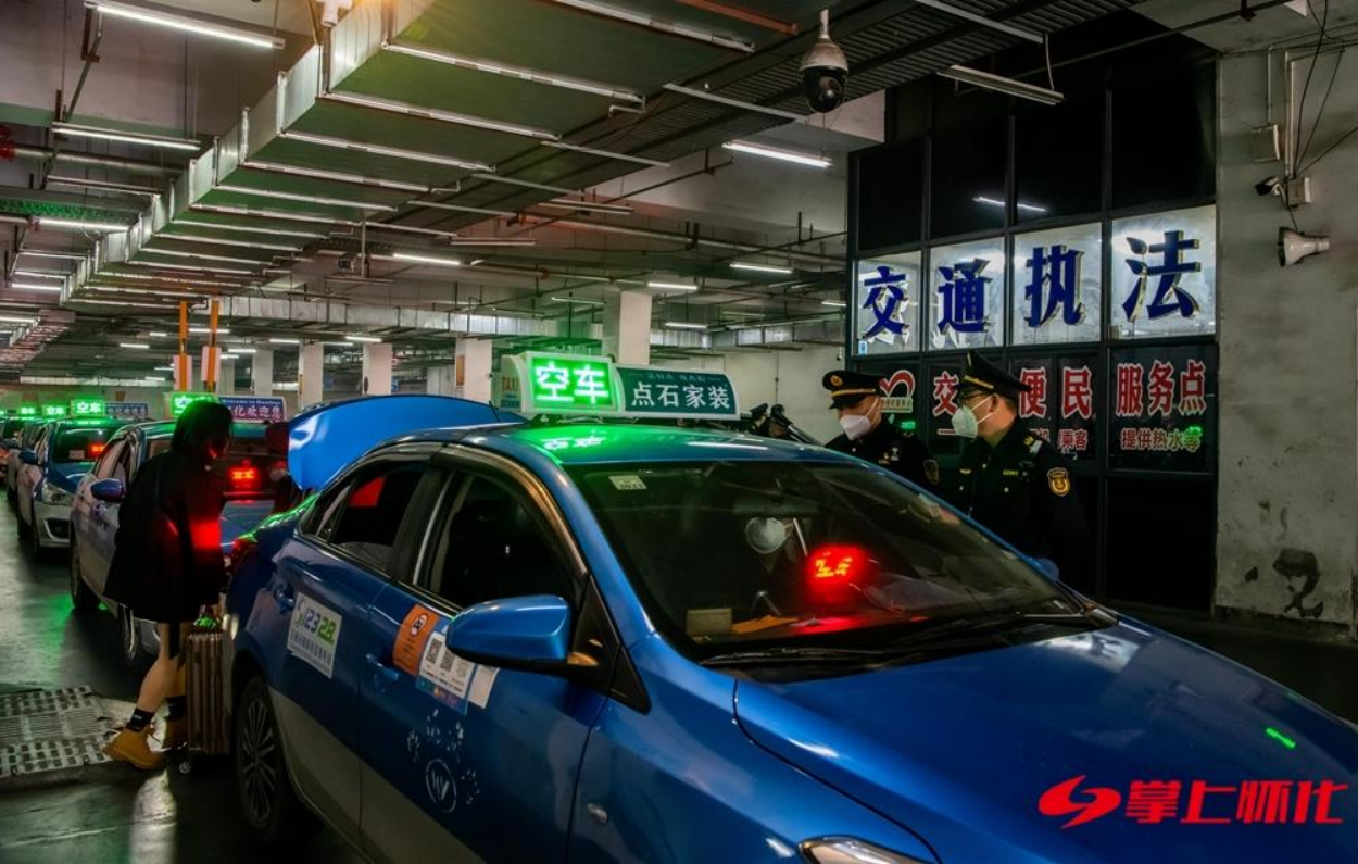 懷化市交通運輸綜合行政執法支隊在高鐵站、火車站、汽車站、高速服務區等交通樞紐,部署執法人員進行執法巡查,采取定點檢查和流動巡查相結合的方式,嚴厲打擊未取得許可擅自從事或者變相從事出租汽車經營的“黑出租車”“黑網約車”。
