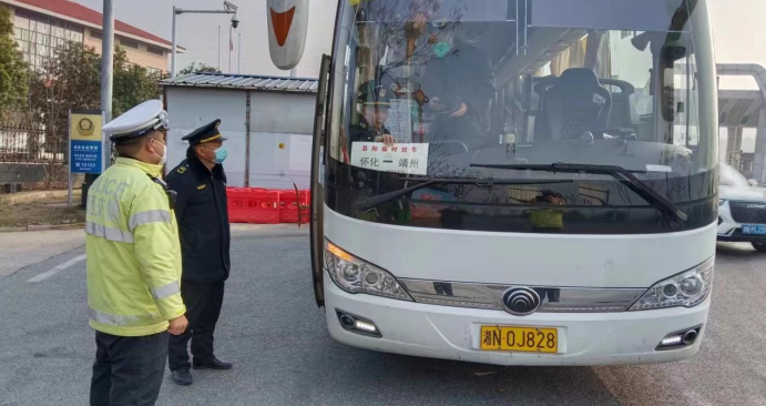 1月11日,靖州縣交通運輸綜合行政執法大隊執法人員與高速交警對入靖客運車輛進行檢查