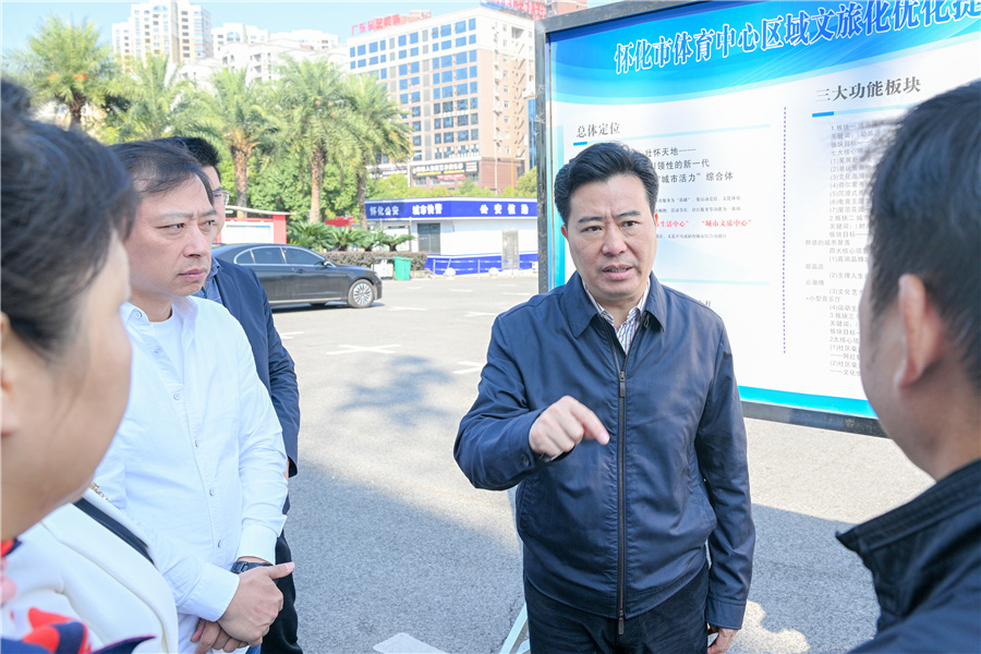 (10月22日上午,市委副書記、市長黎春秋調研主城區城市承載商圈工作。懷化日報全媒體記者 潘雨 攝)