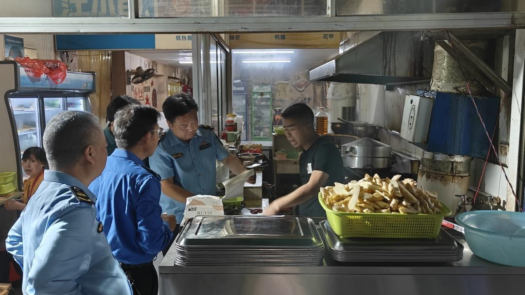 針對舞水家園小區門口左側的三家夜市燒烤店(楊氏吉首串串、新袁龍蝦、新疆喜羊羊燒烤)存在的油煙和噪音擾民問題,聯合執法人員采取一看、二聞、三查的方式,首先核查了是否有營業許可證、是否配套建有油煙凈化器等情況。經現場檢查,三家門店均有營業執照,部分區域安裝了隔音、隔油煙門窗,人行道無店外擺桌占道經營現象。隨后,聯合執法人員要求門店商戶要定期清理油煙凈化器,確保油煙得到有效處理,按規定開展自行監測,確保餐飲油煙穩定達標排放,不得影響居民生活。
