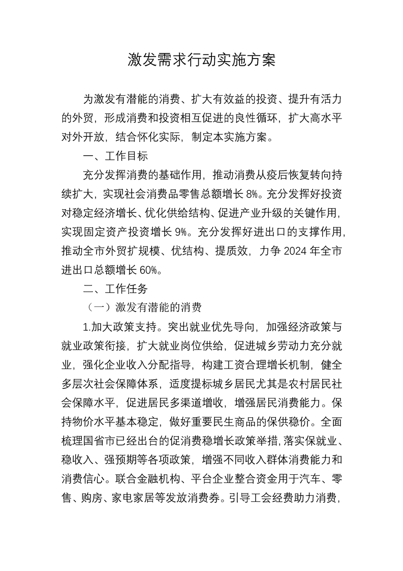 [政策]激發需求行動實施方案