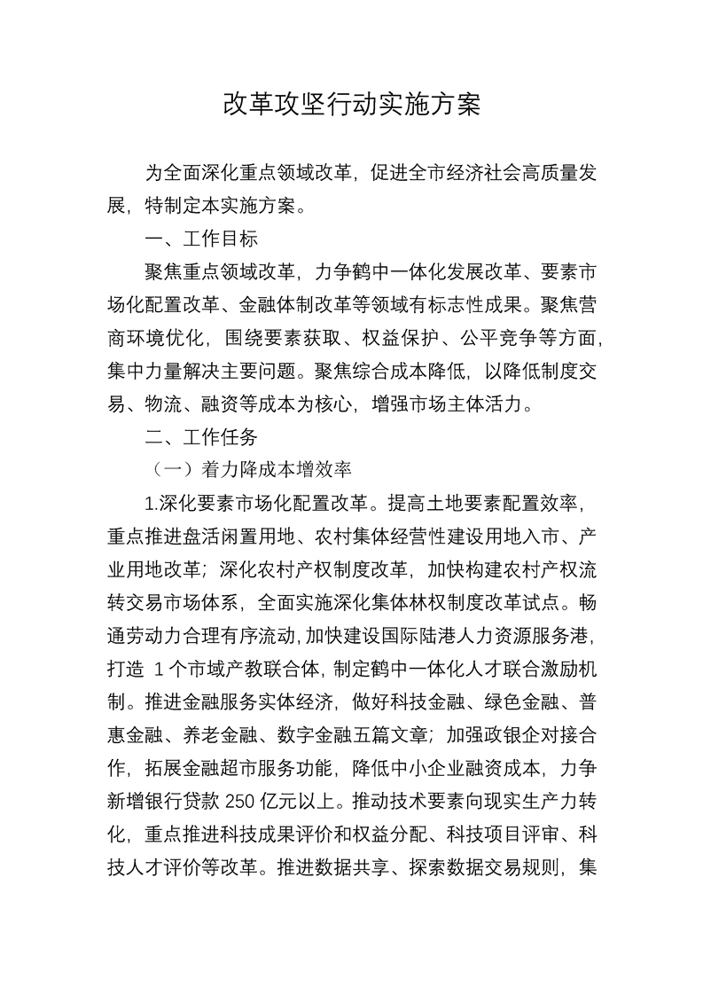 [政策]改革攻堅行動實施方案