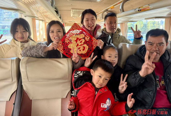 1月14日,通道侗族自治縣汽車客運站,在通道開往懷化的首班春運客車上,旅客們在“幸福合影”表達乘車的喜悅。當天,2025春運大幕開啟,該站全力以赴為旅客提供暖心細致的服務,以服務創造“溫馨”,讓旅客感受更美好。