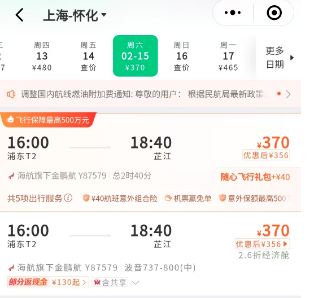 該航線由金鵬航空執(zhí)飛,每周飛行三班,班期為每周二、四、六,來程航班號為Y87579,16:00從上海浦東起飛,18:40到達(dá)懷化芷江,回程航班號為Y87580,19:50從懷化芷江起飛,22:10到達(dá)上海浦東。具體的航班時間和票價(jià)信息已在各大售票平臺公布,旅客可根據(jù)自己的出行計(jì)劃提前購票。