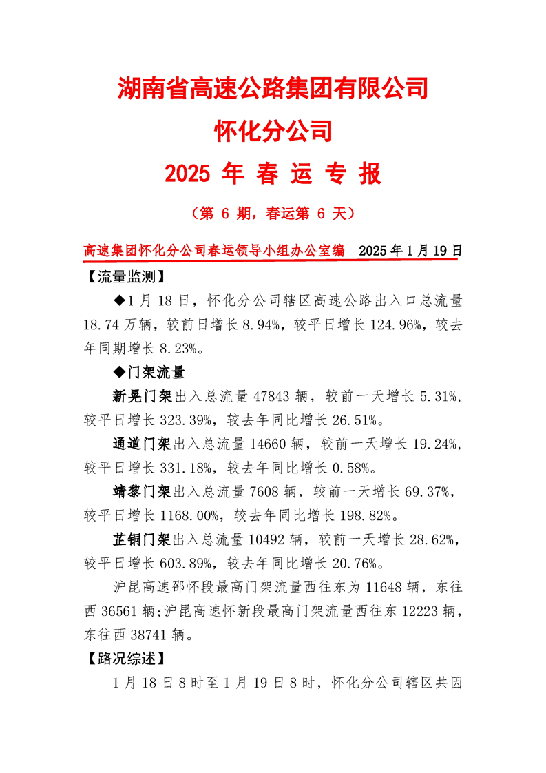 2025年懷化分公司春運專報-第6期