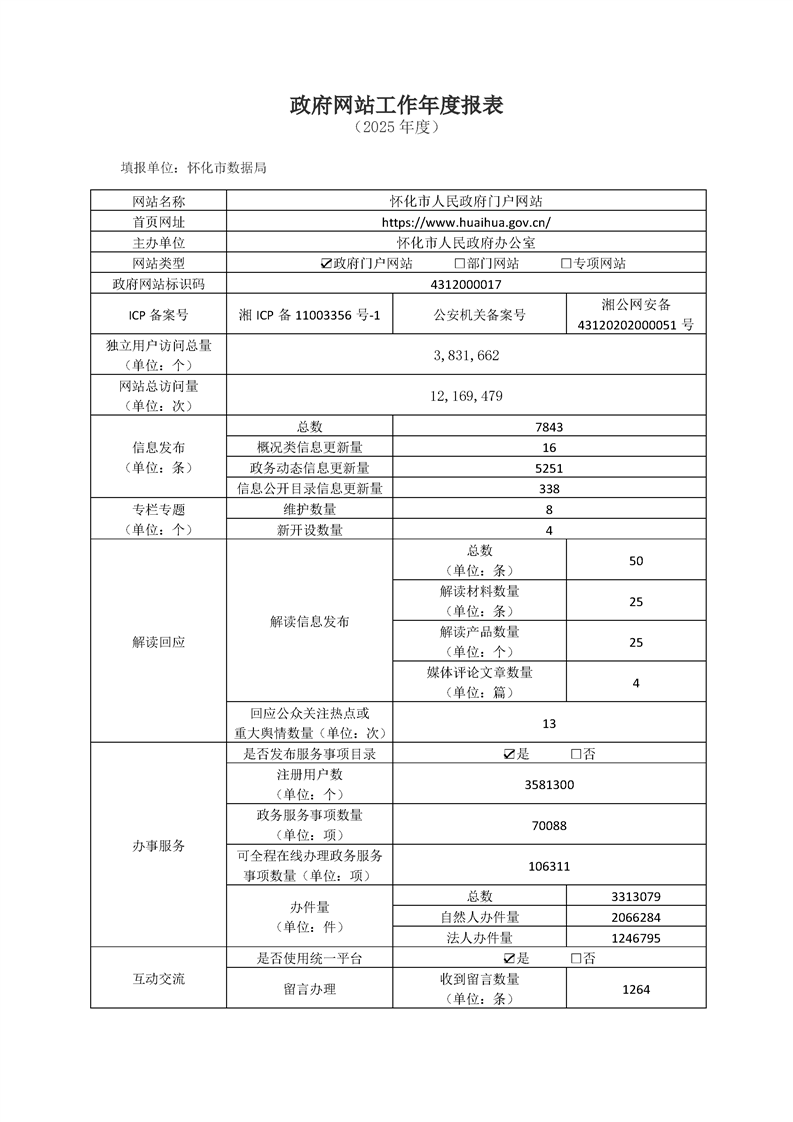 懷化市政府門戶網站2025年度工作年度報表
