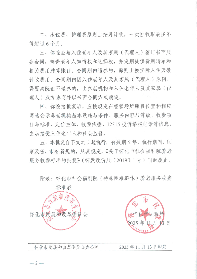 關(guān)于懷化市社會(huì)福利院(特殊困難群體)養(yǎng)老服務(wù)收費(fèi)標(biāo)準(zhǔn)的批復(fù)