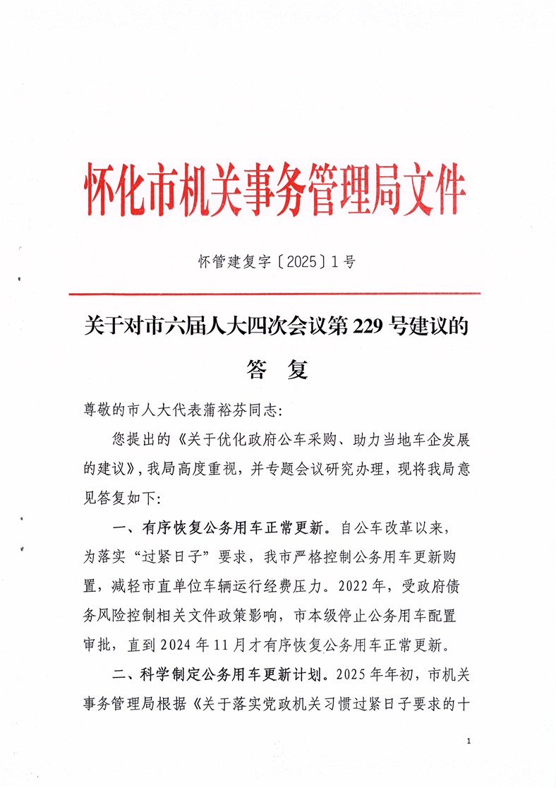 關(guān)于對市六屆人大四次會議第229號建議的答復(fù)
